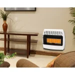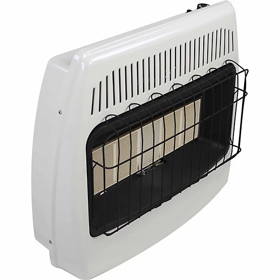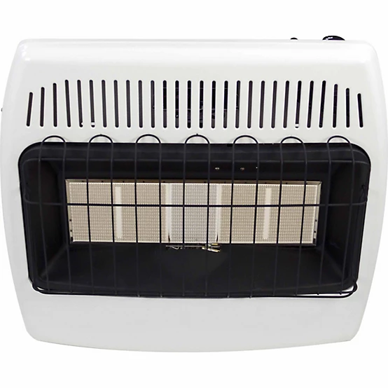 Brand Dyna-Glo Country of Origin Imported Assembly Required No Finish White Heater Area Heated 1000 Sq ft Heater Control Knobs Heater Features Built-In Thermostat Installation Type Wall mount Heater Maximum BTU Heat Output Range 20,000 – 40,000 Housing Material Steel Maximum BTU Heat Output 30,000 BTU Number Of Heat Settings 1 Product Height 24.09 in. Product Length 28.07 in. Product Weight 24.21 lb. Product Width 10.51 in. Voltage N/A Warranty 1 Year Limited Wattage N/A Manufacturer Part Number IR30NMDG-1