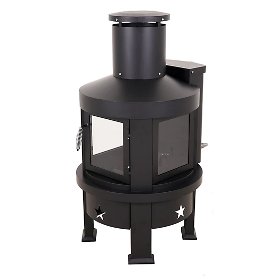 Equipped with a 25 lb. gravity-fed hopper, the chiminea provides up to 5 hours of heat on high and 7 hours on low using 100% hardwood pellets. The large glass viewing windows on the front and sides offer a beautiful campfire ambiance, making it perfect for patios, backyards, and outdoor gatherings. The ground-up heating design ensures more effective warmth distribution, and the adjustable pellet flow system allows for precise temperature control. With no augers, cords, or hassle, this chiminea is built for easy use and maintenance, featuring a 2-step ash cleanout system for effortless cleanup.
