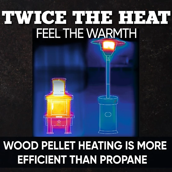 - Efficient Pellet Fuel System: 25 lb. gravity-fed hopper allows for 5 hours on high and 7 hours on low.